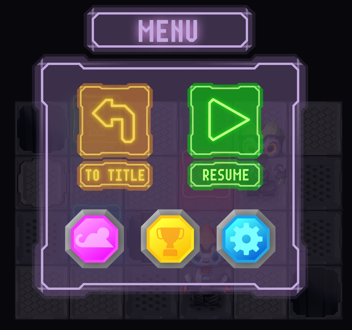 Menu graphics and button assets for the mobile game Robots Need Love Too